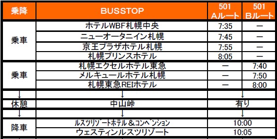 ※ルスツスキー場を日帰りでご利用の場合、乗降場所はルスツリゾートホテル&コンベンションとなります。