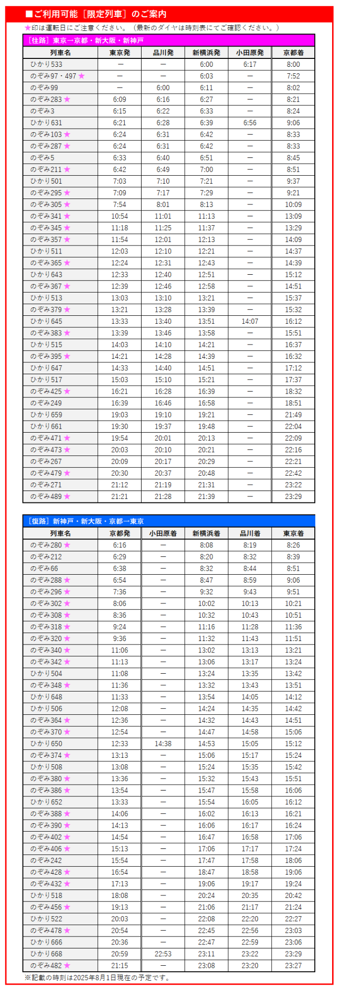 ※小田原駅をご利用の場合は「限定列車ひかり」利用限定となります。