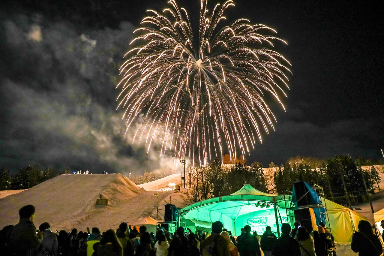 冬花火(イメージ) ※冬花火は一部出発日のみ。天候・降雪状況により花火の打ち上げが出来ない場合があります。