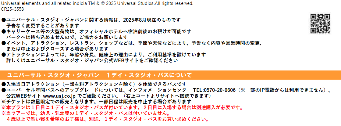 【ユニバーサルシティ駅】駅~宿泊ホテル間は各自移動 ※大阪市内各駅に途中下車をしなければユニバーサルシティ駅までご利用いただけます。 【※1】スタジオ・パスは1日目利用となります。2日目はご利用いただけません。