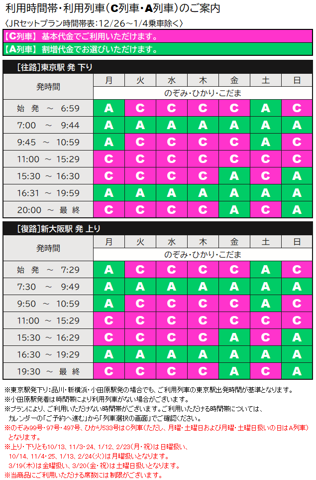 おとなお1人様(東京駅発着/のぞみ・ひかり・こだまC列車(普通車指定席)利用/1デイ・スタジオ・パス(1日目利用)付/食事なしの場合)